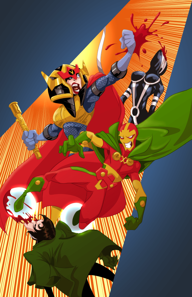 Black Adam vs ShazamShazam vs Black AdamOld School Wolvie vs. Ol’ Green JeansRogue vs Captain MarvelSpidey vs RhinoHuman Torch vs Namor the SubmarinerCaptain America vs Red SkullX-Factor vs. ApocalypseHulk vs ThingHulk vs Thing (“Japanese” poster variant)