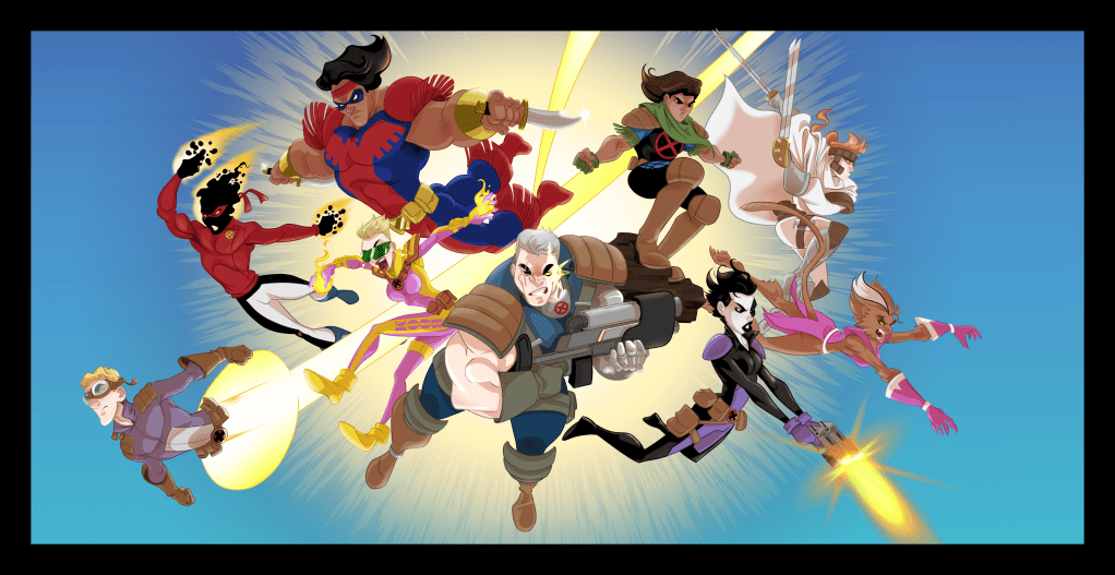 Cyclops through the ages.Marvel Girl through the agesBeast through the agesIceman through the agesX-Men: Outback EraNew MutantsFun in the sun with Rogue and GambitOld School Wolvie vs. Ol’ Green JeansCABLE TO THE X-TREME!!!BishopHavok