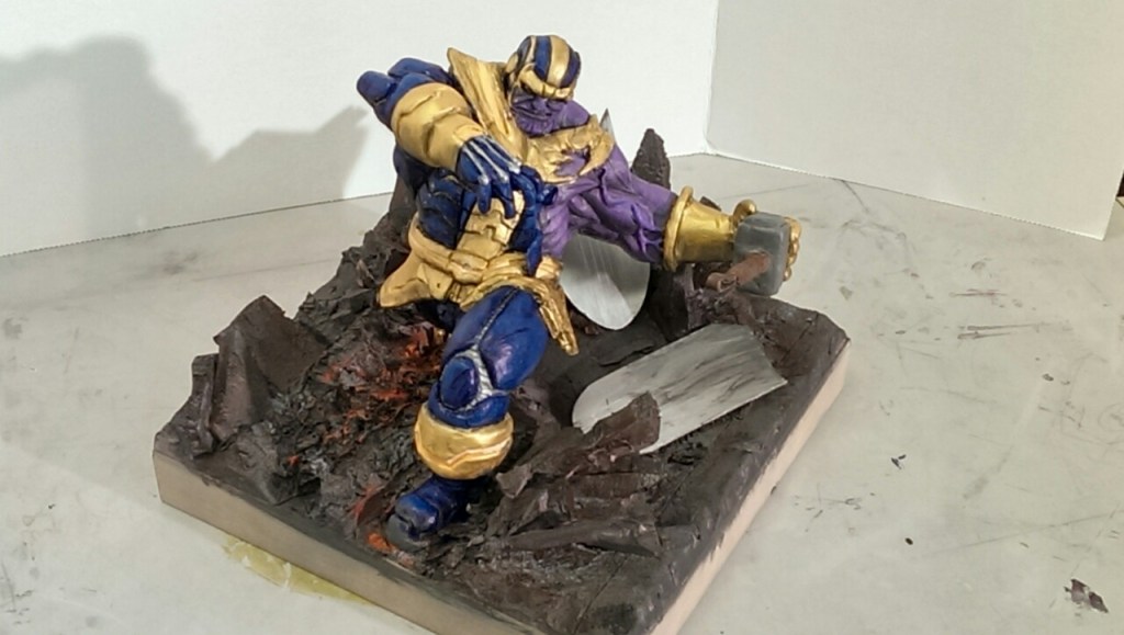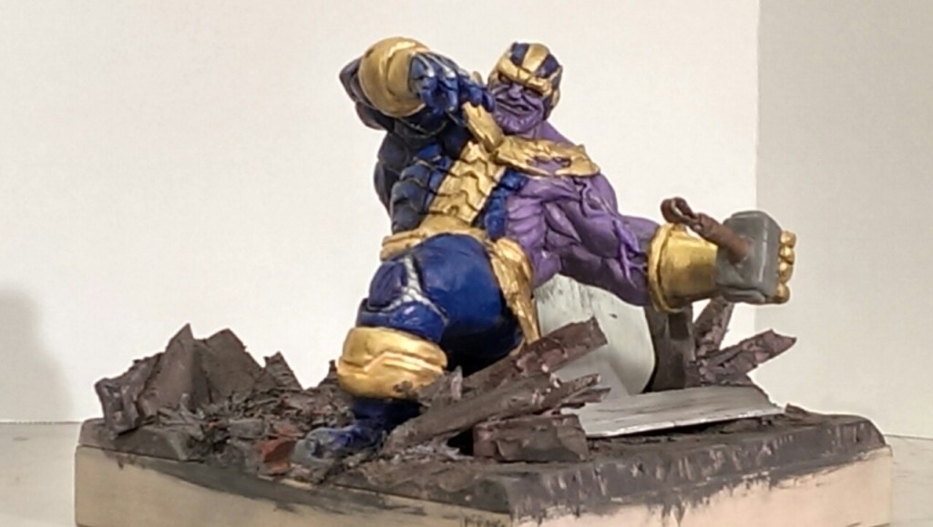 My first big sculpt from class back in Seneca. Marvel’s Thanos catching Mjolnir in mid-air. I really loved making this and I sincerely want to do more. Just gotta get some more free time and pretty coloured paper to buy things with!